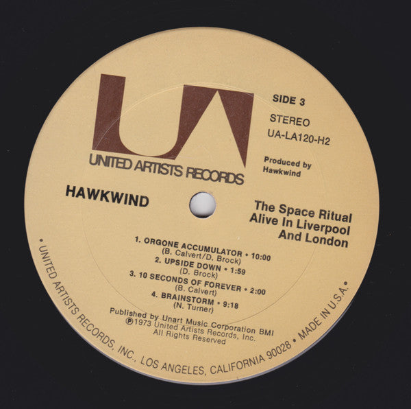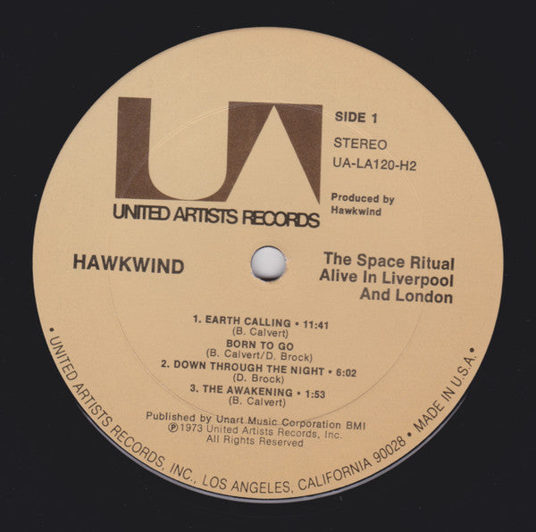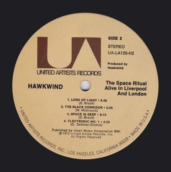 This release is auto-coupled - LP 1: Side A & Side D LP 2: Side B & Side C On labels: The spaces between Cat.No. "UA-LA120-H2" and "Produced by Hawkwind" are wider as on: [r5149052 The Space Ritual was recorded live at Liverpool Stadium 22.12.72 and Brixton Sundown, London 31.12.72 D1 is credited as 7 X 7 on the labels. Catalog numbers: UA-LA120-H2 on the labels. UA-LA120-H-0798 on the spine.