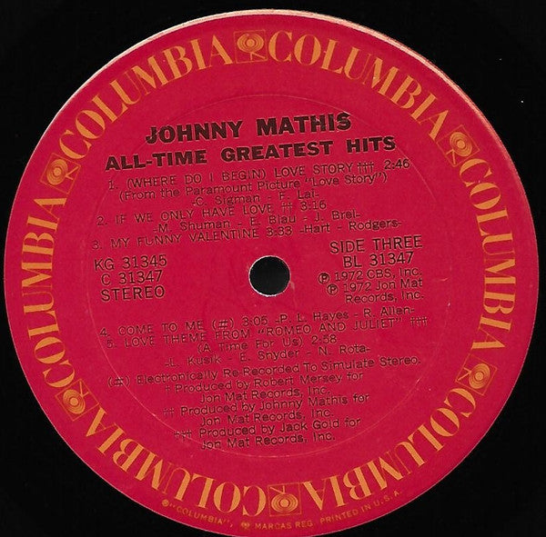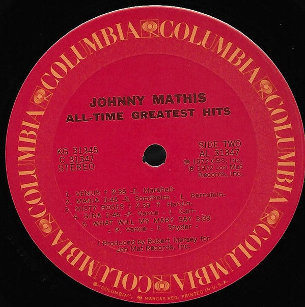 Johnny Mathis - Johnny Mathis' All-Time Greatest Hits (2xLP, Comp, RE, Ter) (Very Good (VG))
