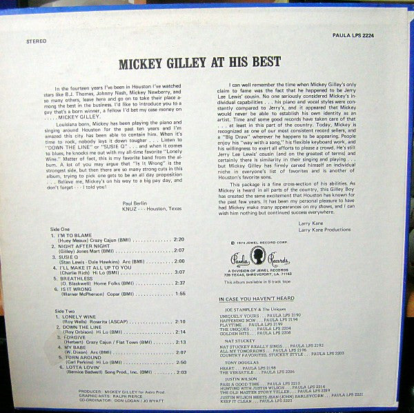 Mickey Gilley - At His Best (LP, Comp) (Near Mint (NM or M-))