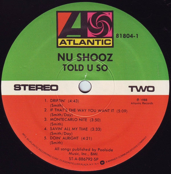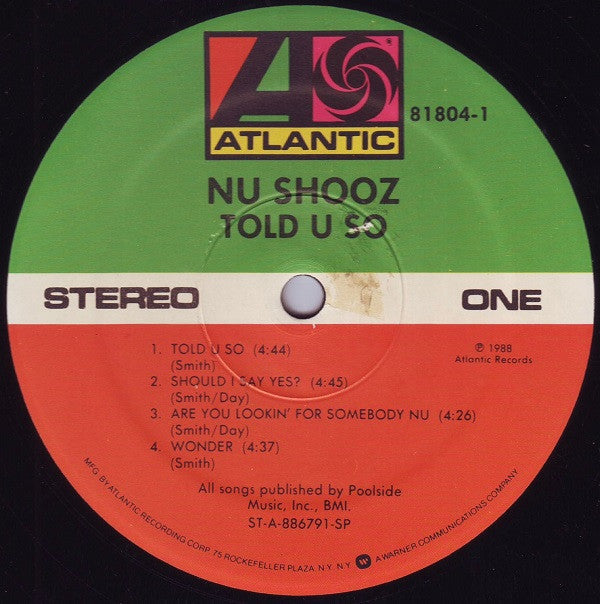 Nu Shooz - Told U So (LP, Album, SP ) (Very Good (VG))