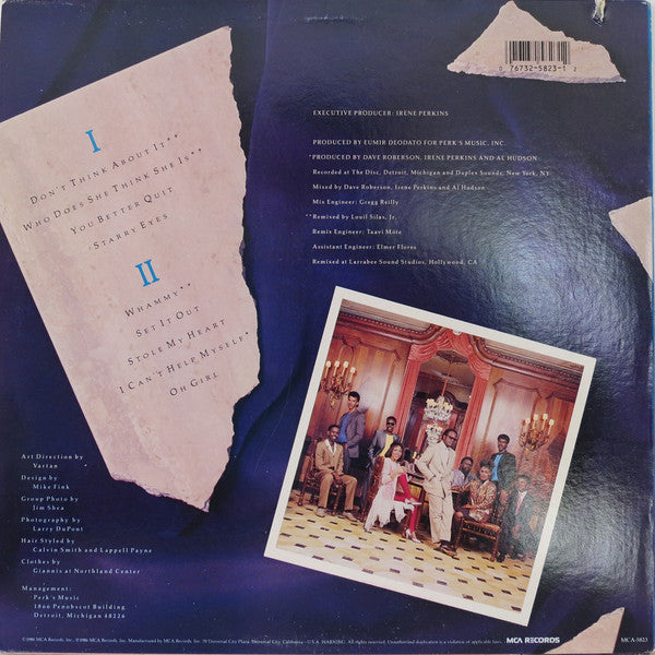 Produced for Perk's Music Recorded at The Disc, Detroit, Michigan and Duplex Studios, New York, NY Remixed at Larrabee Sound Studios, Hollywood, CA On labels: ℗ 1986 MCA Records, Inc. Mfg. by MCA Records, Inc.