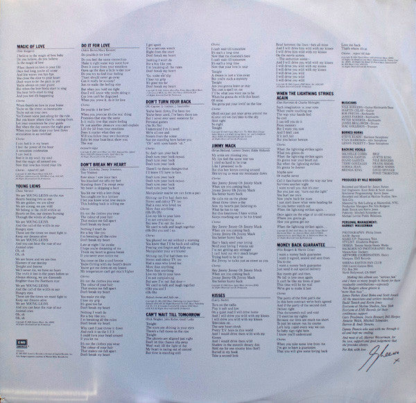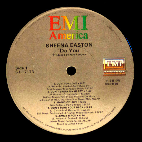 SJ-17173 printed on spine and cover (bottom-left corner), and on side 1's label. ST-17173 printed on lyrics side of inner sleeve (bottom-left corner below EMI America logo). SV-17173 printed on side 2's label. For matrix runout info MASTERDISK 13K, MASTERDISK is stamped and 13K is etched next to it. For matrix runout info SV SJ-2-17173-Z7 #2, SJ is crossed out and #2 is etched lighter.