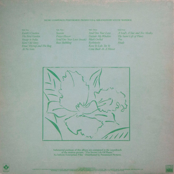 Artist and release title in Braille writing on front cover by L.A. Brille Institute Artist, release title and boxed flower illustration is embossed on the front of sleeve Boxed flower illustration is embossed the back of sleeve Digitally Recorded and Edited on Sony PCM 1600 "The Secret Life Of Plants" is an Infinite Enterprises Film Produced by Michael Braun From the book "The Secret Life Of Plants" by Peter Tompkins and Christopher Bird Canadian pressing with label variation from [r6818314 Runout variation Variant: No mention of Quality Records "SPC Litho In Canada" near the bottom of the spine.