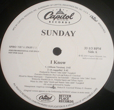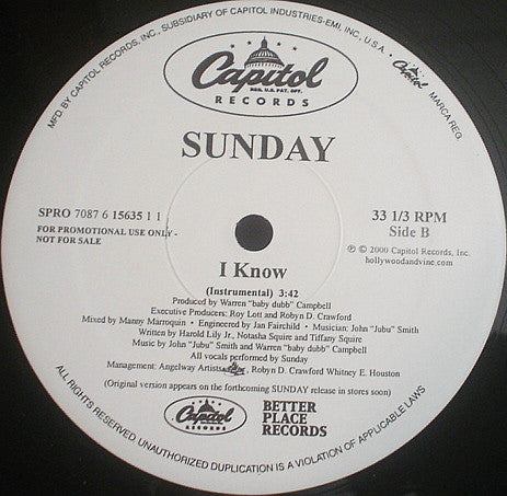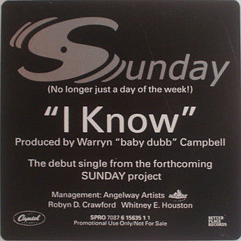 Sunday - I Know (12", Promo) (Very Good Plus (VG+))