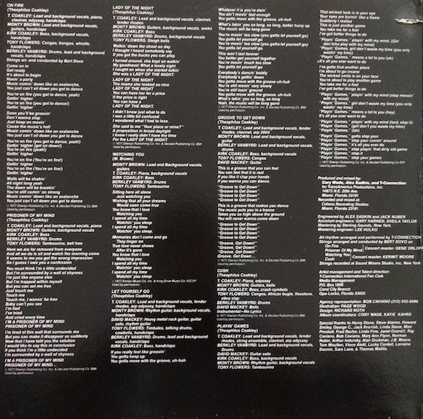 PRC Recording Company, Richmond, IN pressing denoted by "PRC" etch in runouts. Recorded and mixed at Criteria Recording Studios, Miami, Florida Strings recorded at Sound Mixers Studio, Inc. New York Mastering by Sterling Sounds, New York ℗ © 1977, T.K. Productions, Inc. Distributed by TK Productions, Inc.