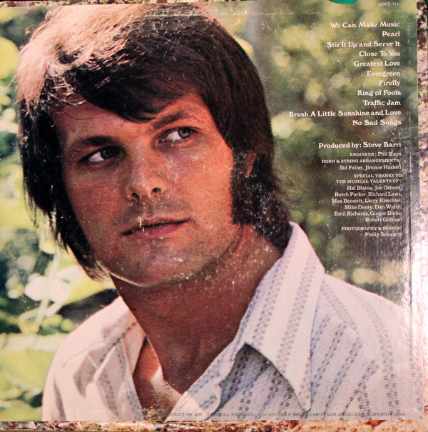 Cat # on jacket: ABCS-714 Cat # on labels: ABCS 714 Printed on back cover: A Product of ABC / Dunhill Records / 8255 Beverly Boulevard / Los Angeles, California 90048 Printed on labels: ABC Records Inc., New York, N.Y. 10019 • Made in USA Publishing on labels: A1: Little Fugitive Music (BMI) A2: Lowery Music Co., Inc. (BMI) A3, A5, A6, B2, B5: Low-Twi Music, Inc. (BMI) A4: Beechwood Music, Corp. (BMI) B1: United Artists Music (ASCAP) B3: Trousdale Music Publishers, Inc. (BMI) B4: Blue Seas Music, Inc./Jac Music Co., Inc./U.S. Songs, Inc. (ASCAP) A2 is titled "Greatest Love" on back cover vs. "The Greatest Love" on label B4 is titled "Close To You" on back cover vs. "(They Long To Be) Close To You" on label B6 title is not listed on back cover and has no credits or rights info on label