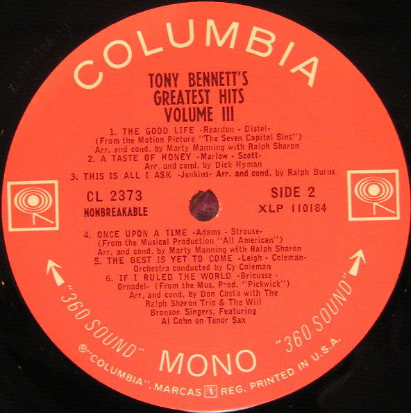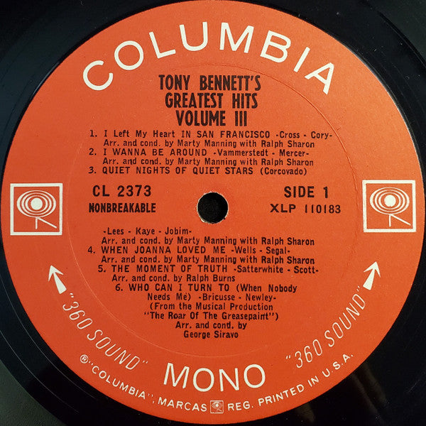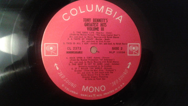 Tony Bennett - Tony's Greatest Hits, Volume III (LP, Comp, Mono, Ter) (Good Plus (G+))