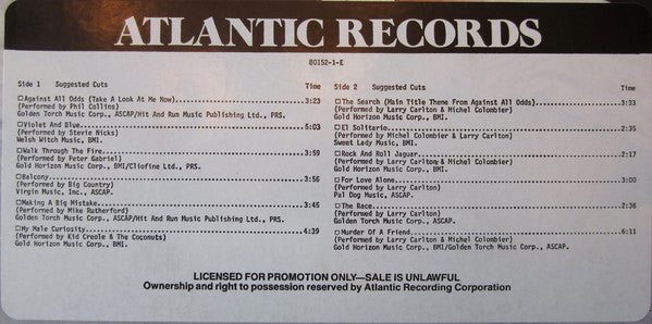 Various - Against All Odds (Music From The Original Motion Picture Soundtrack) (LP, Album) (Near Mint (NM or M-))