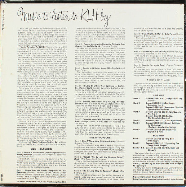 Various - Music To Listen To KLH By (LP, Comp) (Near Mint (NM or M-))