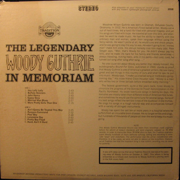 Woody Guthrie - In Memoriam (LP, Comp) (Very Good Plus (VG+))